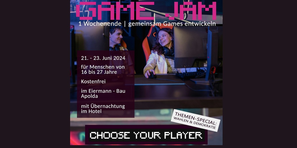 Ein Wochenende gemeinsam Games entwickeln. Vom 21. bis 23. Juni kannst du mit jungen Game-Entwicklerinnen und Entwicklern eigene Spiel-Ideen Wirklichkeit werden lassen.