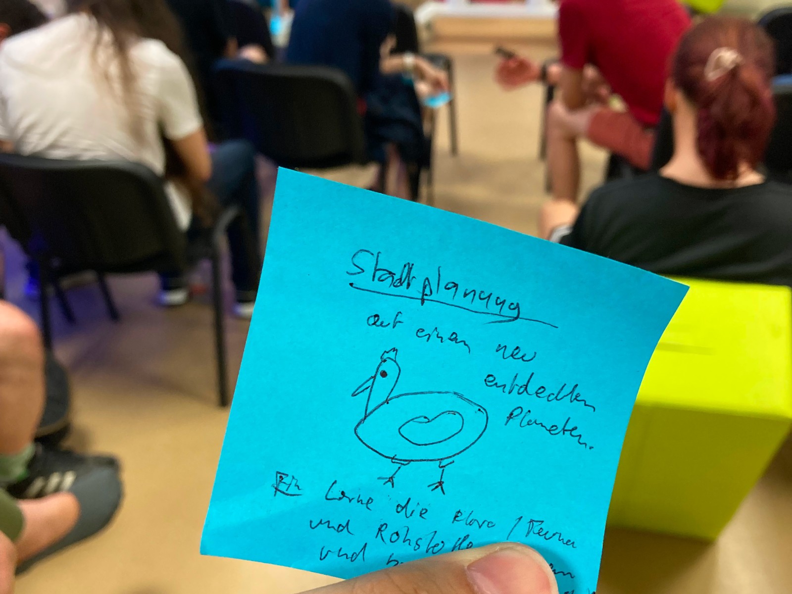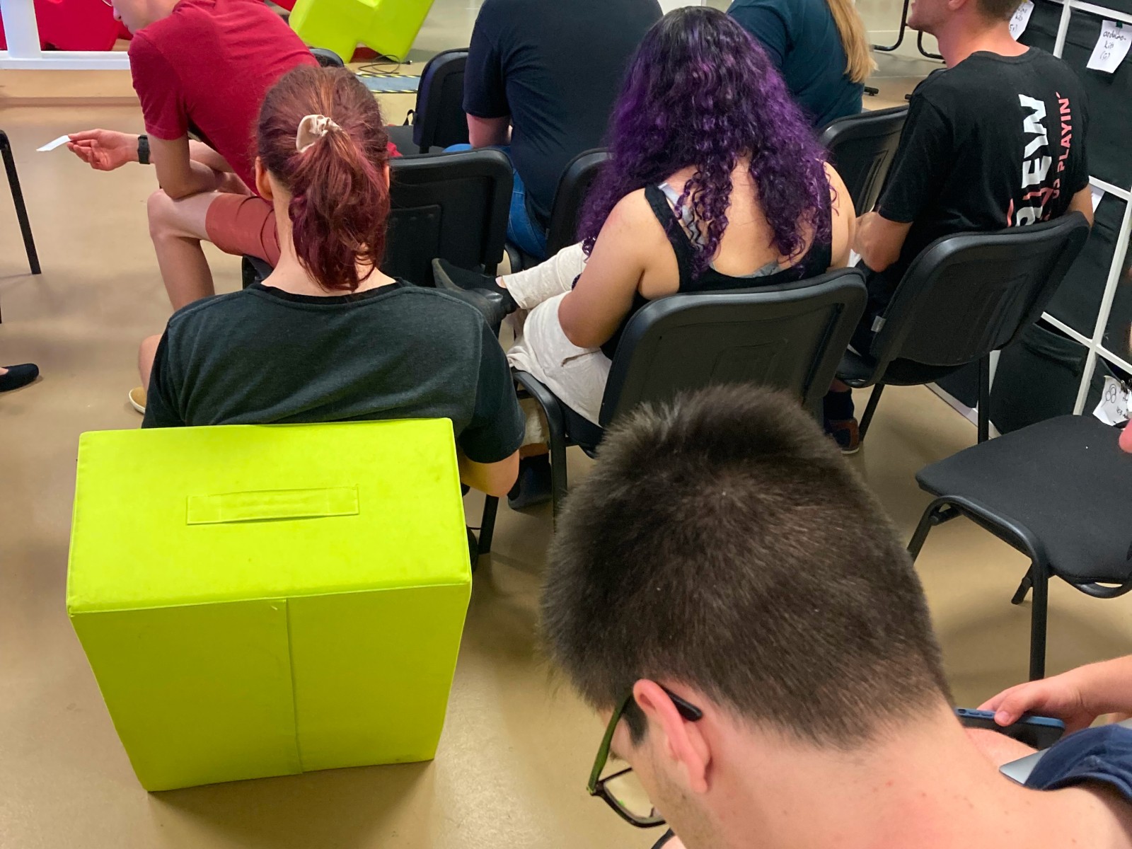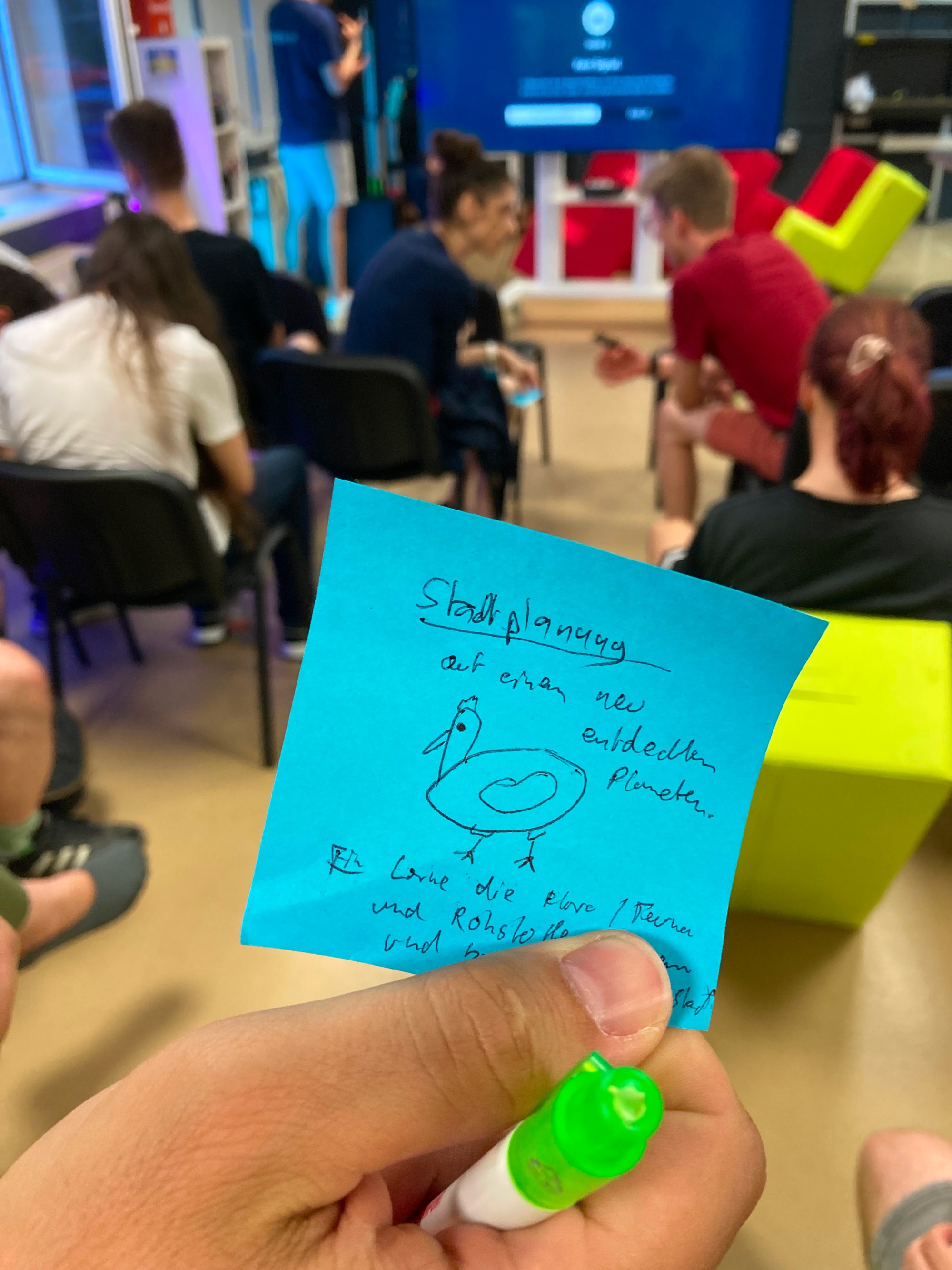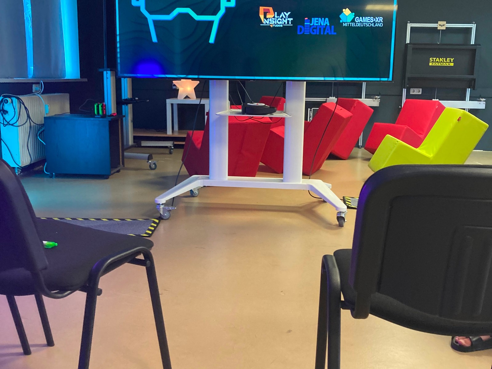 Wie auf den Fotos zu sehen, war unser barrierefreier Makerspace voll mit Akteuren und Akteurinnen aus der Thüringer Gamesbranche, die sich zu einem tollen Austauch über unser aller Leidenschaft und Beruf getroffen haben. Neben spannenden Inputs wurden auch Spieleideen gepitcht, Spiele ausprobiert und sogar ein Forschungsprojekt vorgestellt.