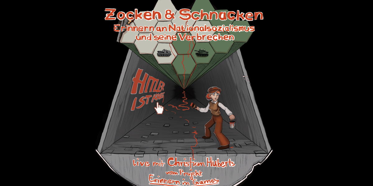 Beim Format „Zocken und Schnacken“ werden Games von Speaker*innen vorgespielt und anhand einer Fragestellung diskutiert. Das Publikum ist eingeladen mit den Spielenden zu diskutieren. In dieser Ausgabe ist Christian Huberts auf der Bühne und zockt mit uns. Christian Huberts ist Projektmanager für die Initiative "Erinnern mit Games".