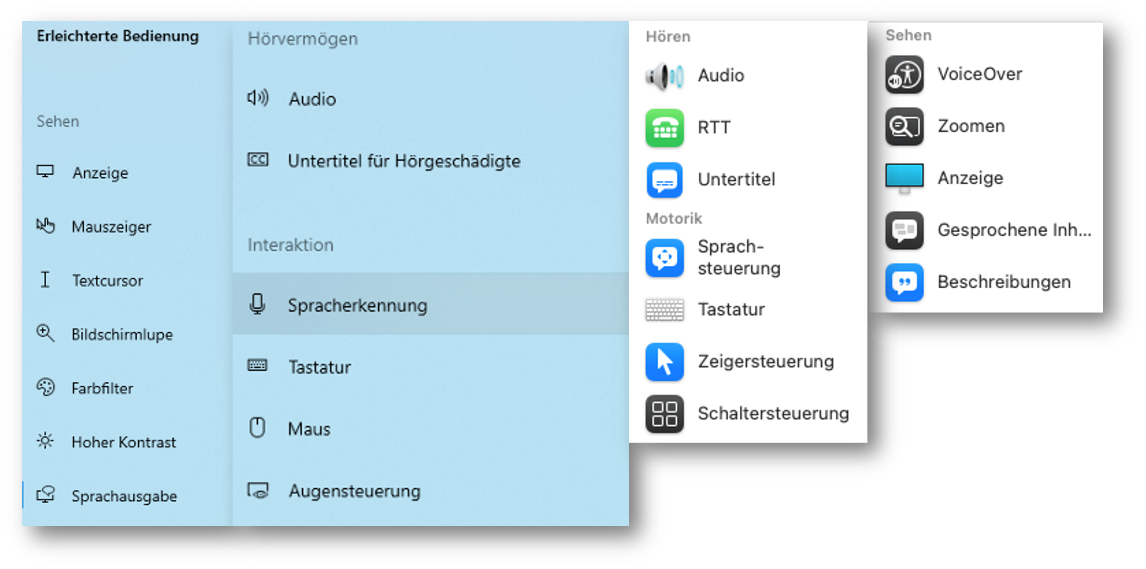 Die gängigen Betriebsysteme besitzen bereits etliche Funktionen für Barrierefreiheit. Ein Blick in die Einstellungen lohnt sich!